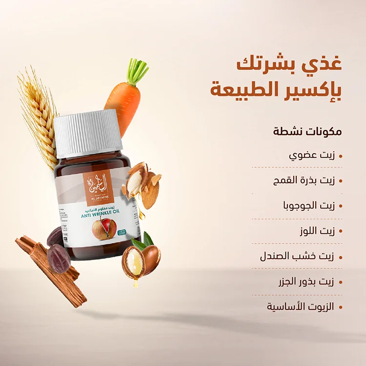 يعد زيت مضاد التجاعيد من الزيوت المفيدة للبشرة حيث انه يتغلغل في الجلد بشكل عميق كما انه يوفر الترطيب و التغذية لخلايا الجلد.